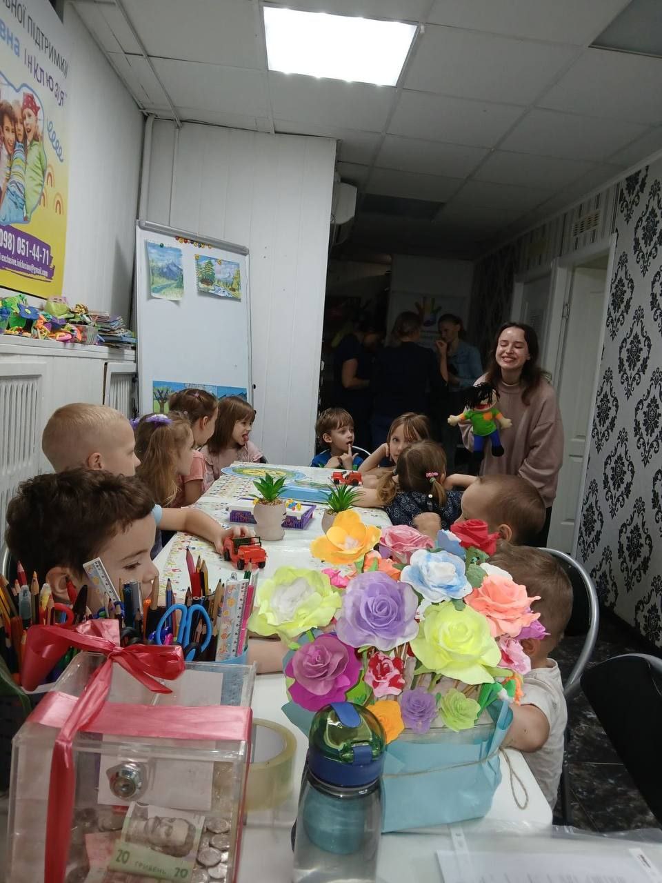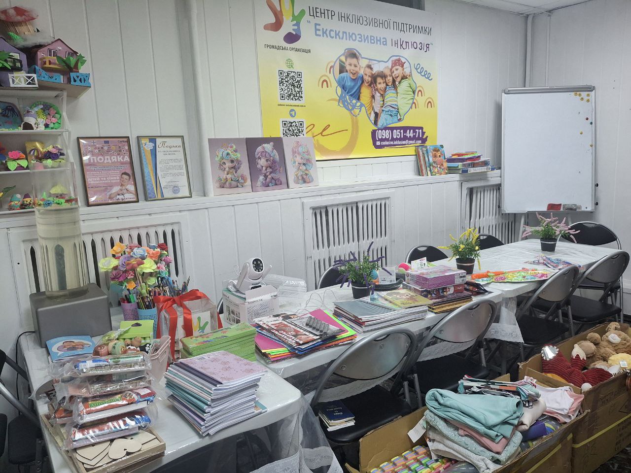 Ми отримали дитячі речі, іграшки, памперси, рюкзаки, багато канцелярського приладдя та матеріалів для проведення майстер-класів для наших дітей.